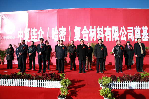 中国建材集团副总经理郭朝民、中国建材报社社长陈才来、中国复合材料集团公司董事长、总经理张定金、哈密地委书记郭连山、哈密地区政协工委主任魏天哲、哈密行署副专员牙森·斯地克等出席奠基仪式。中国复合材料集团公司副总经理、连云港胜游公司董事长任桂芳主持仪式。