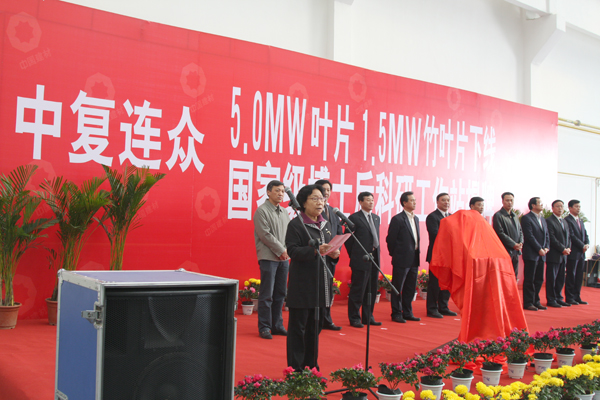 中国建材集团董事长宋志平,连云港市委书记、市人大主任王建华,连云港市政府市长徐一平,中国风能专业委员会秘书长秦海岩,中国建材集团副总经理马建国,连云港市委常委张光东、唐国海、副市长施炎,江苏省人力资源和社会保障厅专家和国际合作处处长金凡,中国复合材料集团有限公司董事长、总经理张定金出席庆典仪式。中国复合材料集团有限公司副总经理、中复连众董事长任桂芳主持仪式。