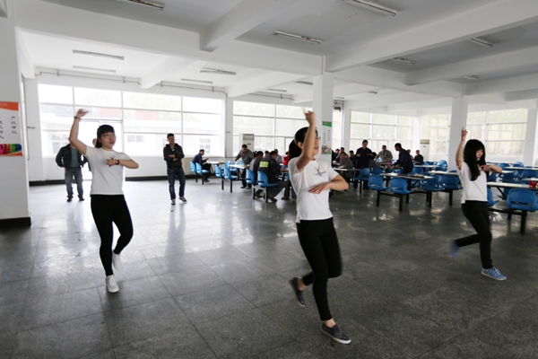 “大王叫我来巡山,我把人间转一转……”伴着欢快的音乐,踏着巡山的步伐,4月12日,中复连众9位青年员工在宋跳厂区的食堂进行了一场小型的舞蹈“快闪”活动。