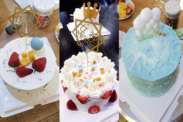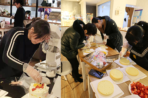 蛋糕烘焙对于公司女员工来说是一项全新的体验,大家兴致勃勃,在专业烘焙师傅的指导下,按照脑中构思已久的造型进行制作。大家相互帮助、相互赞美,打奶油、裱花、装饰……每个人忙得不亦乐乎,经过近两个小时的时间,一个个创意十足的作品展现在大家的眼前。